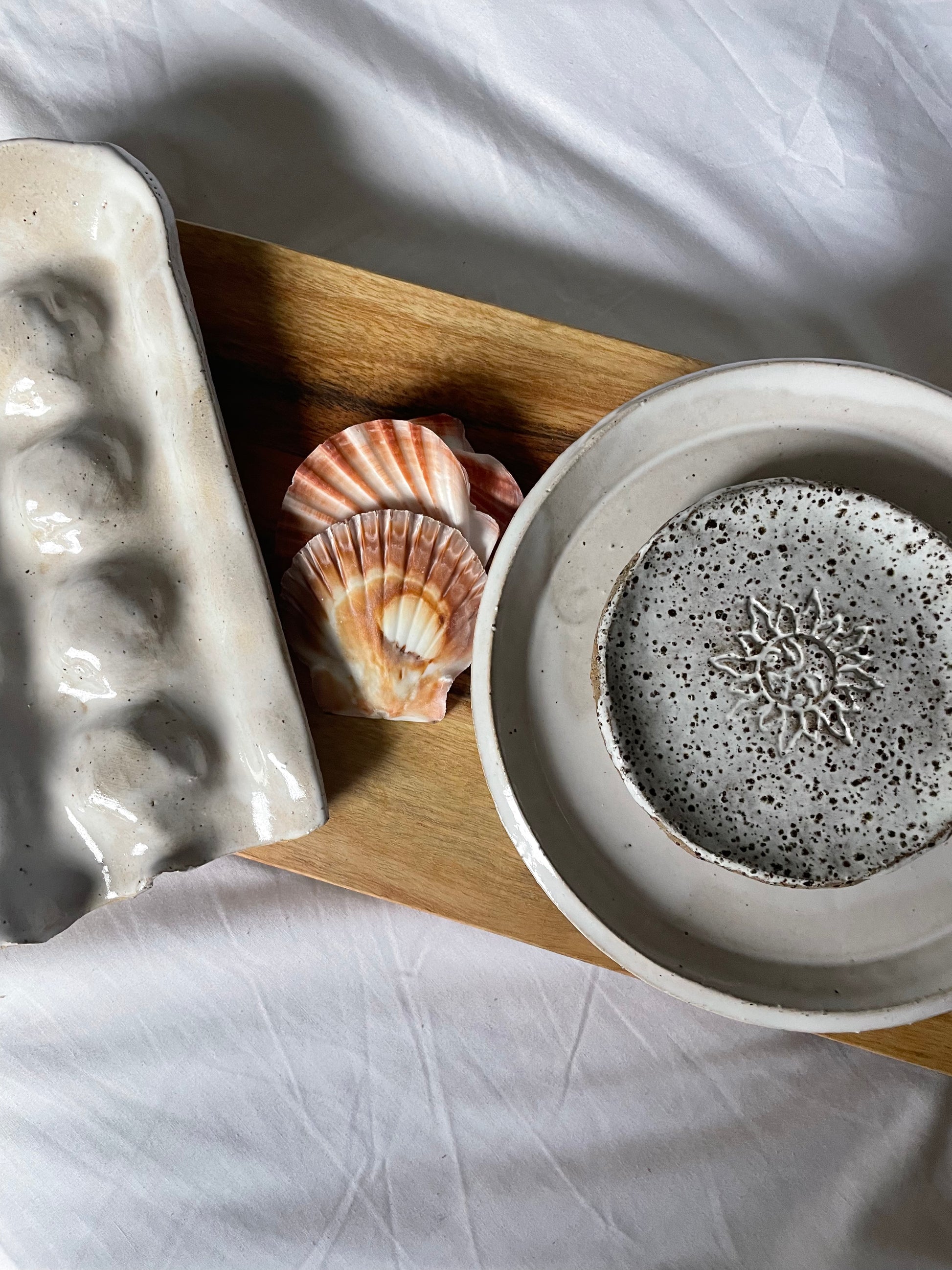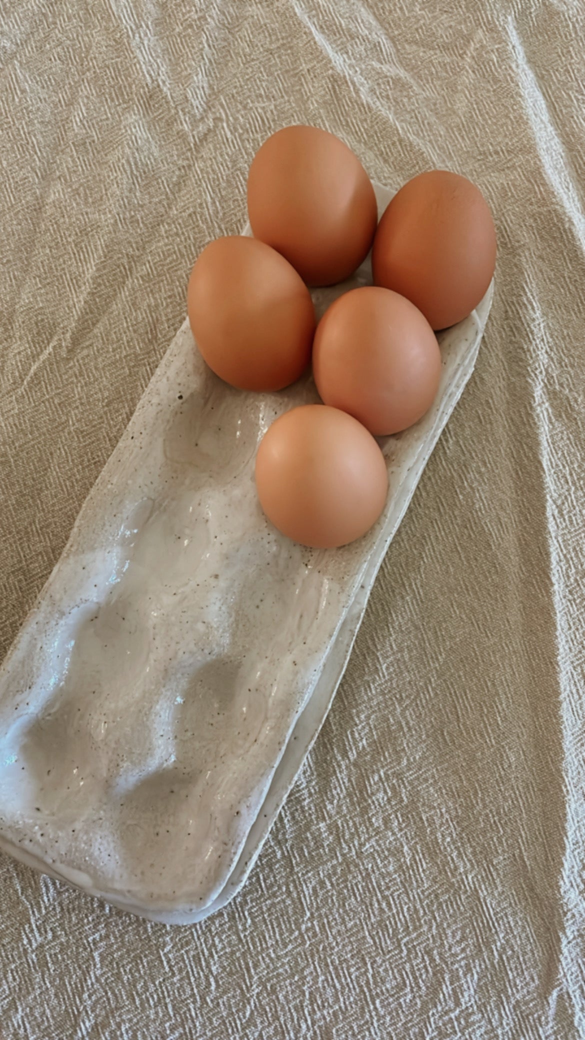 This handmade ceramic egg tray has been made from Australian stoneware clay with a white glaze and is perfect for sustainably storing your eggs either in the fridge or on your bench. Neutral and calming, this piece will seamlessly pair with your other wares and decor.